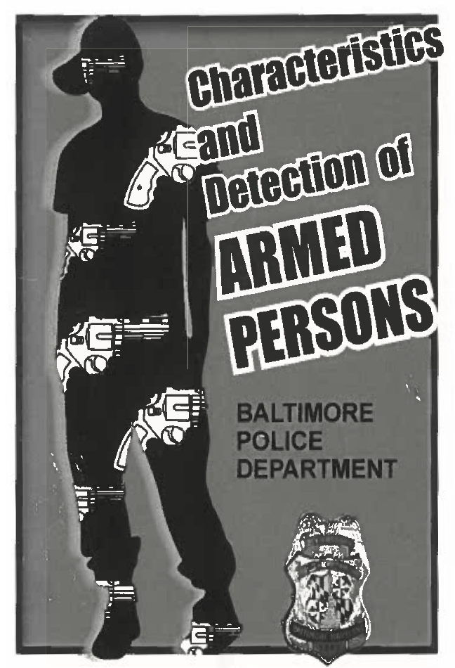 As the booklet cover attempts to illustrate, the CAP framework is all about finding concealed guns. The framework consists of a list of traits that purportedly indicate that a person may be armed. This includes someone who wears seasonally inappropriate clothing, a tailored shirt untucked, an outfit with something that does not match (like suit pants with a windbreaker), only one glove, or a fanny pack or an unzipped shoulder bag. It also includes someone who turns their body, touches their waistband, or wears or uses a shoulder bag but keeps their wallet in their pocket.